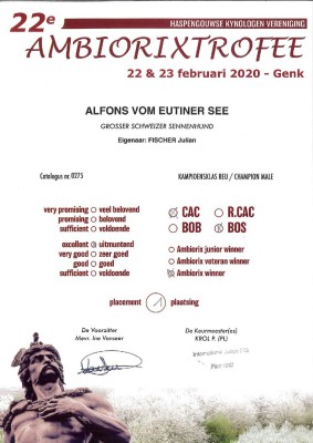 Alfons vom Eutiner See - Champion Klasse, V1,CAC,VDH+SSV,BOS
