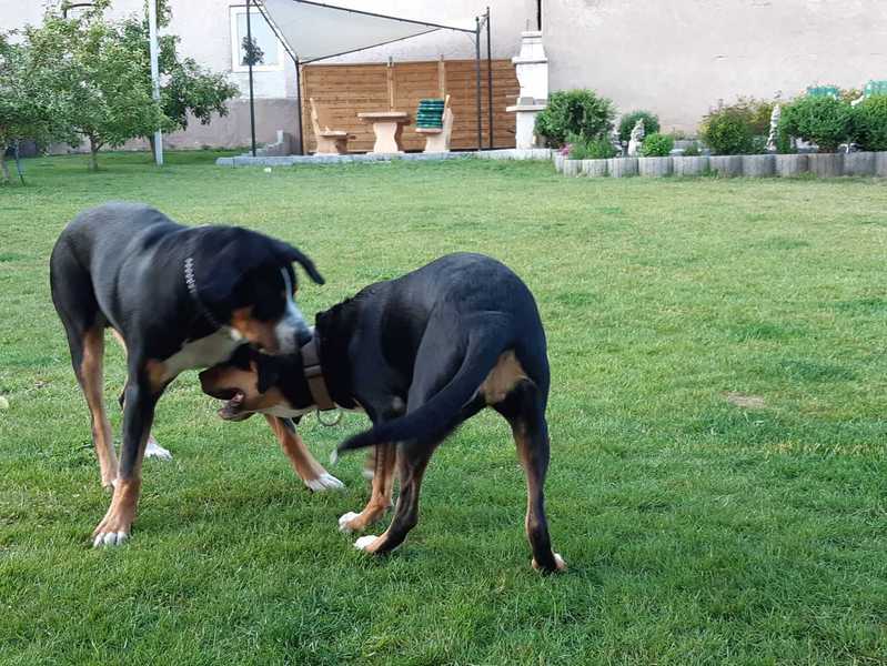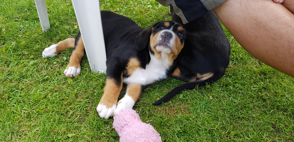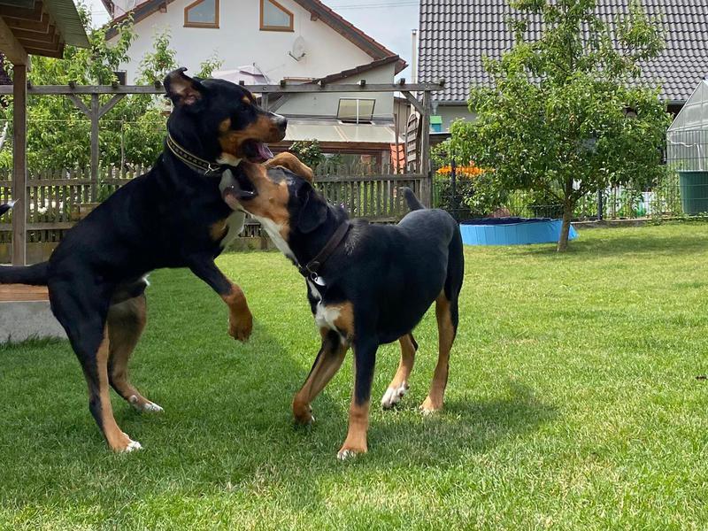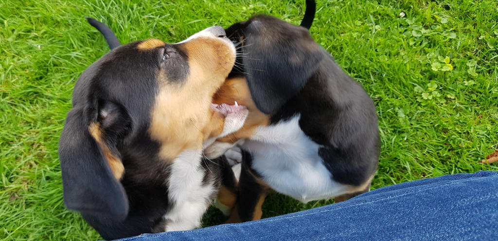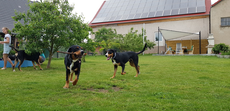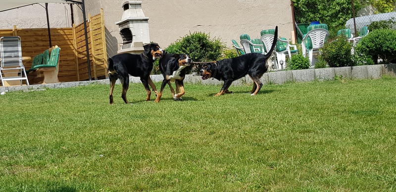Die Jungs haben sich total gefreut, haben aber etwas verdutzt geguckt, als sie gemerkt haben, dass sie "nur" zum Spielen da ist. Die 3 haben sich super verstanden und die Herrchen & Frauchen hatten einen total schönen Abend.